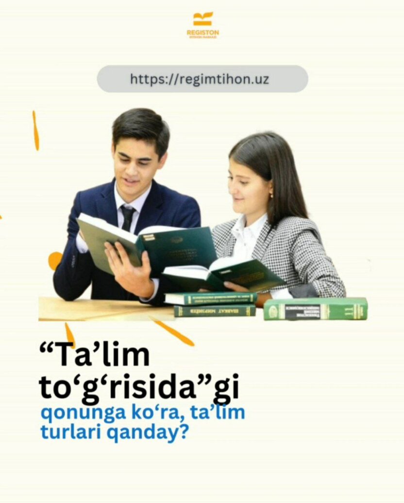 ⚡️ “Ta’lim to‘g‘risida”gi qonunga ko‘ra, ta’lim turlari qanday?