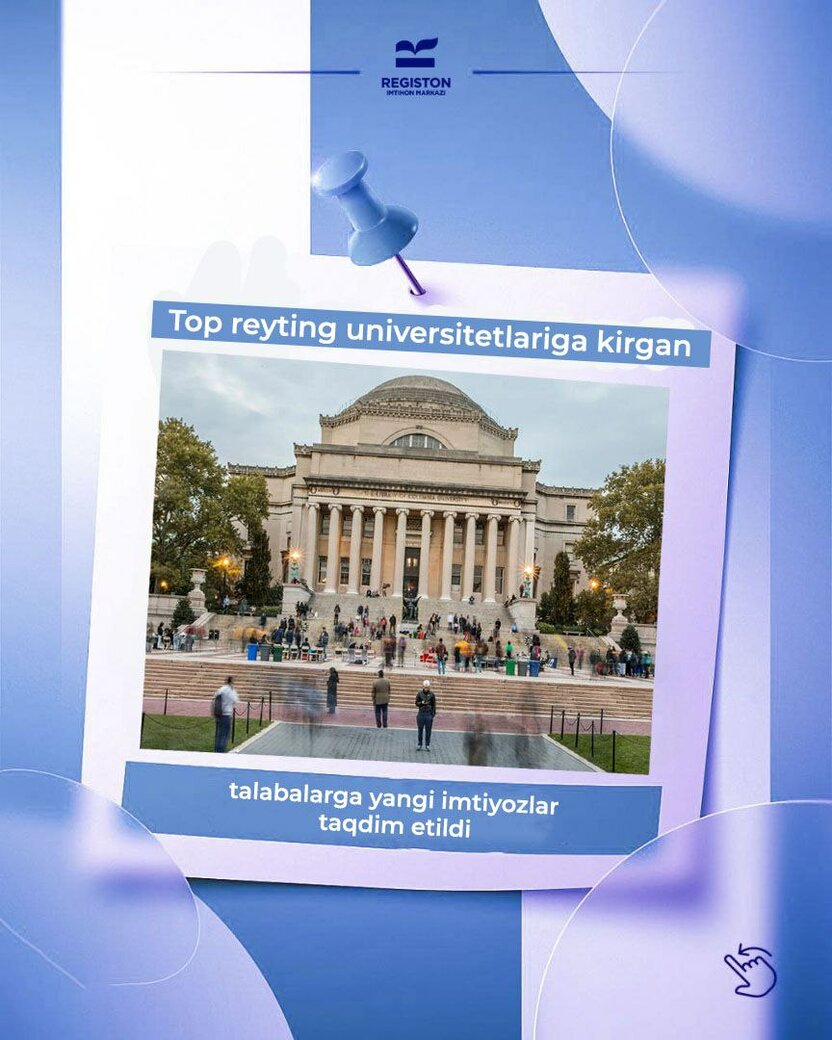 O‘zbekiston ta’lim tizimida muhim o‘zgarishlar ro‘y berdi. Endi xalqaro reytinglarda yuqori o‘rinlarni egallagan universitetlarga o‘qishga kirgan talabalar uchun davlat tomonidan yanada ko‘proq moliyaviy qo‘llab-quvvatlash imkoniyatlari yaratilmoqda.