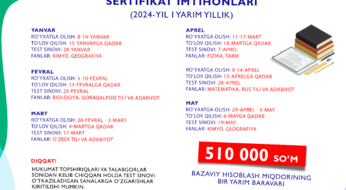 2024-yilning 1-yarmida bo‘lib o‘tadigan milliy sertifikat imtihonlari